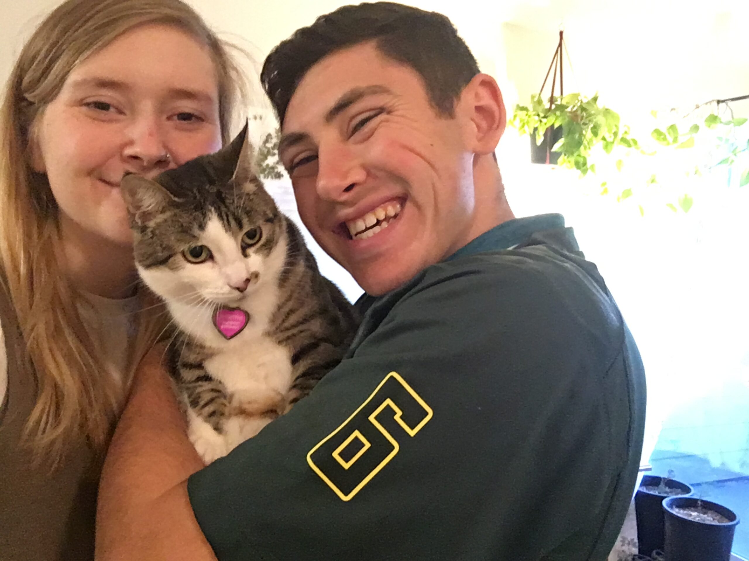 “Hello, We are Elliot and Jen! Martha (formerly Sister Sludge) has been the absolute perfect first cat. She warmed up to us and her new home very quickly- we adopted her in September and she was sleeping in our bed by October. Martha loves the laser pointer, chirping at birds through the window, and playing with wool socks. She is happy to meow to let you know when you’re sleeping past breakfast time, or when you’re up too late at night. She shows off how sweet she is by curling up on the lap of someone she’s just met, though we have to be sitting for at least an hour before she’ll share the same affection with us.